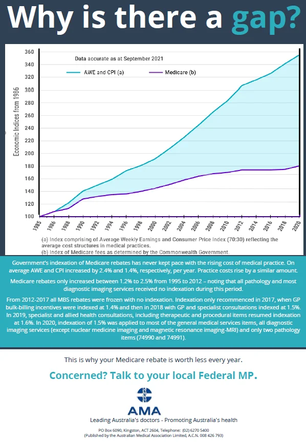 Unfortunately, the Medicare rebates do not cover the full cost of providing quality GP care, including the costs of all of the overheads that go into running a practice, and as such the GPs and the practice have been subsidising the shortfall in the cost of healthcare for a number of years. The MBS rebates have been indexed at a much lower rate than CPI over the past 30 years, e.g. the MBS was indexed at 1.6% in July 2022 and current CPI is running at 5.1%. The GPs working in our practice are all highly trained, very experienced specialist GPs, and are committed to providing the highest level of care possible. The fees have been set to enable that level of care and commitment to continue.